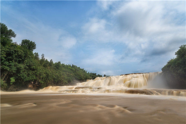2019年6月8日,贵州安顺,黄果树瀑布进入丰水期。图为黄果树大瀑布上游的陡坡塘瀑布。