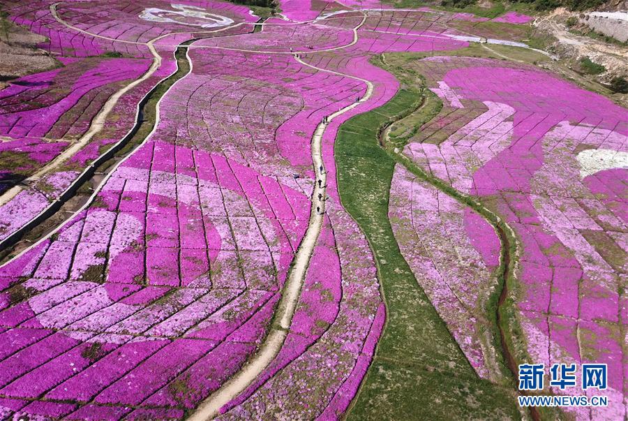 这是安徽省霍山县太阳乡船仓村的花海(4月19日无人机拍摄)。新华社记者 刘军喜 摄
