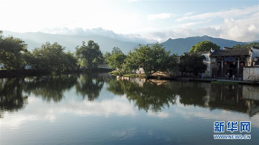 这是安徽黟县宏村风景区月沼景点的清晨景象(5月22日无人机拍摄)。 新华社记者 刘军喜 摄