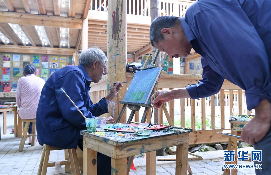 老人在“龙潭公益艺术教育中心”画画(6月11日摄)。 新华社记者 林善传 摄