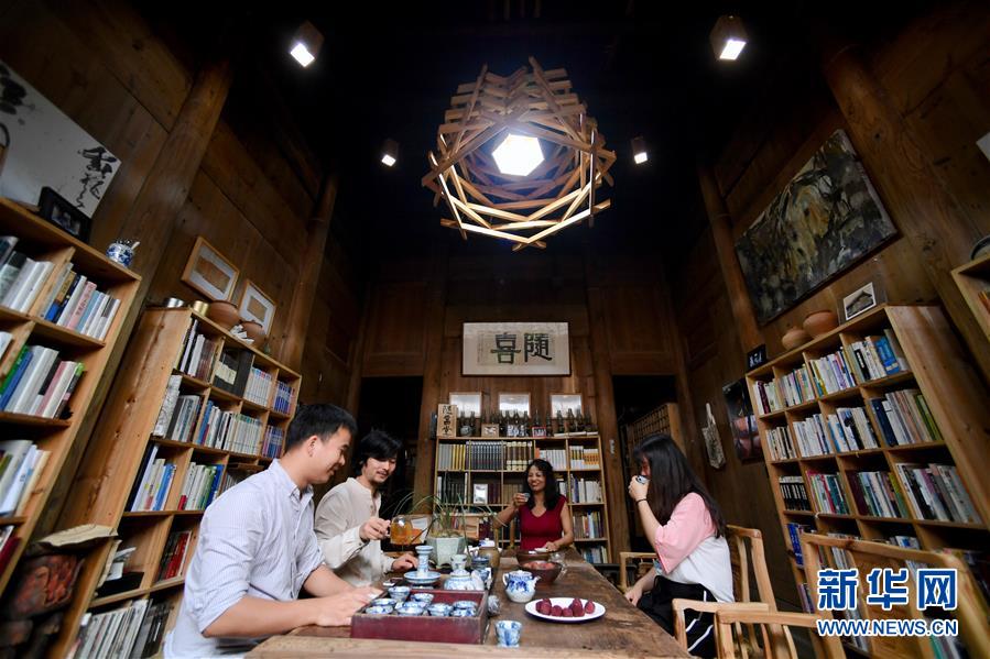 “新村民”在龙潭村的“随喜书屋”交流创业心得(6月11日摄)。 新华社记者 林善传 摄