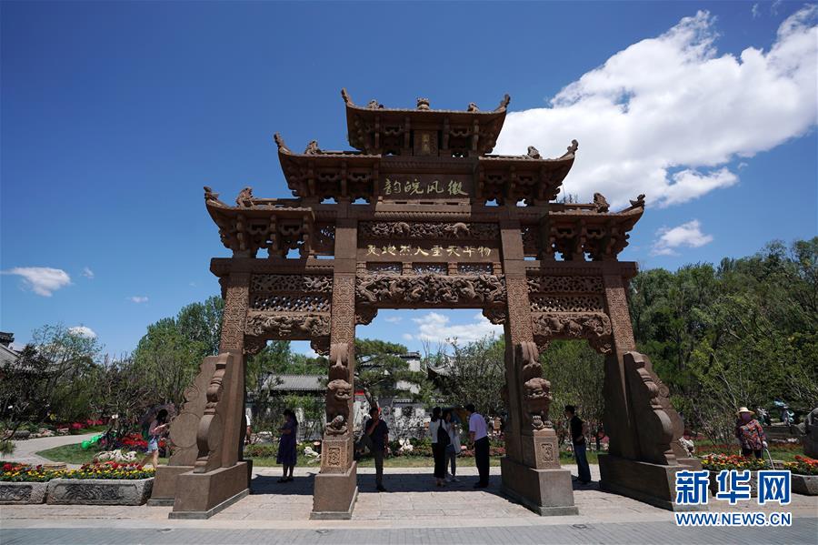 6月9日,游人在北京世园会安徽园参观。 新华社记者 鞠焕宗 摄