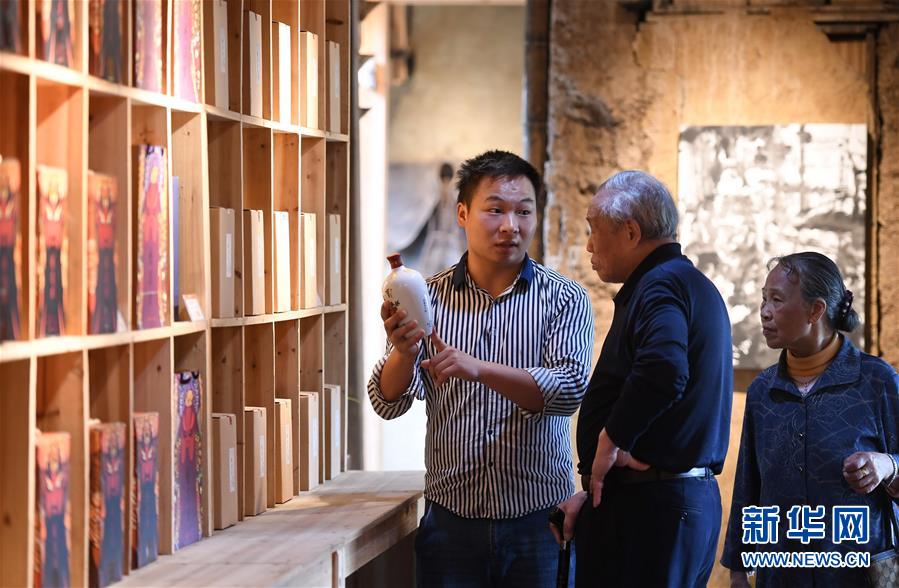 来自江西的“新村民”肖继河(左一)在龙潭村的酒博物馆向游客介绍龙潭村的传统米酒(6月12日摄)。 新华社记者 林善传 摄