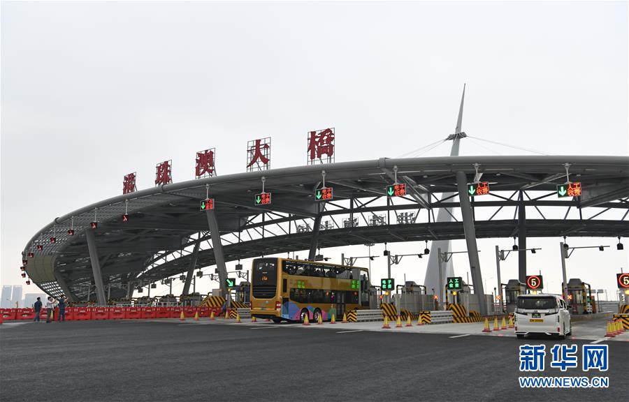 10月24日,从珠海开往香港的首批车辆驶上港珠澳大桥。 新华社记者梁旭摄