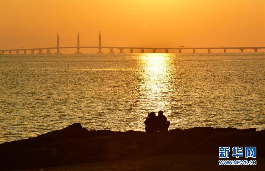 日出时分的港珠澳大桥(2018年10月22日摄)。 新华社记者殷博古摄