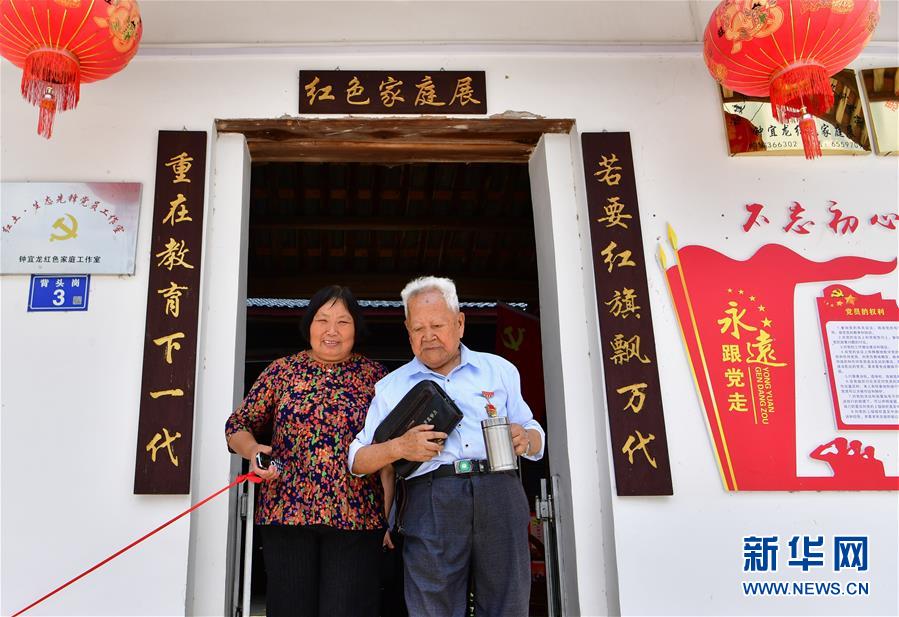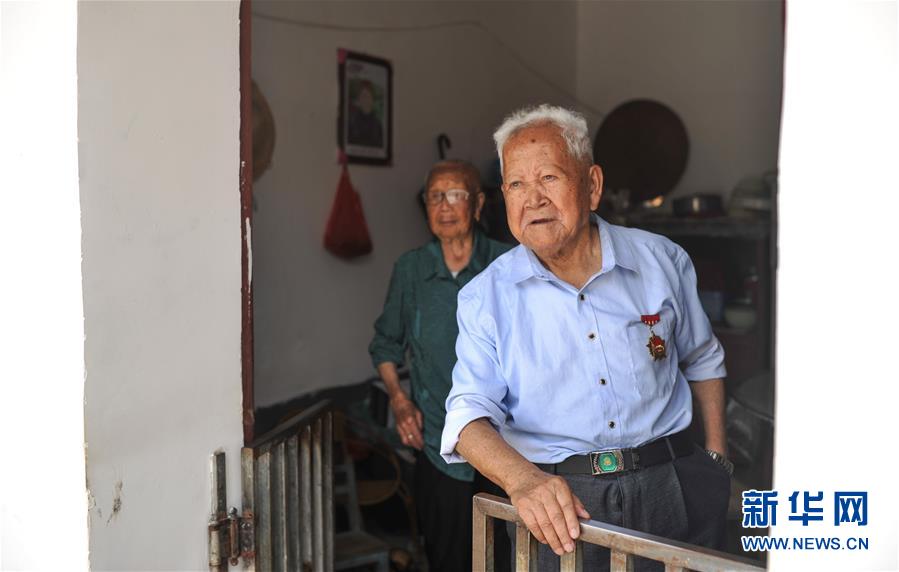 6月16日,在福建省长汀县南山镇长窠头村,钟宜龙老人和他94岁高龄的老伴涂成秀站在屋内。新华社记者李任滋摄