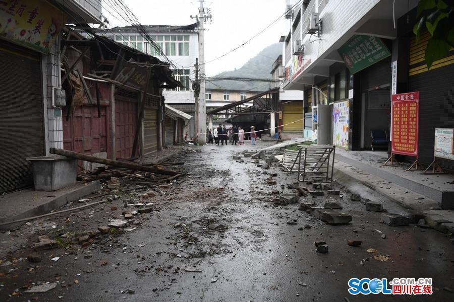 这是6月18日早上,记者从震中双河镇拍摄的受灾现场图片。(记者 杨树 摄)