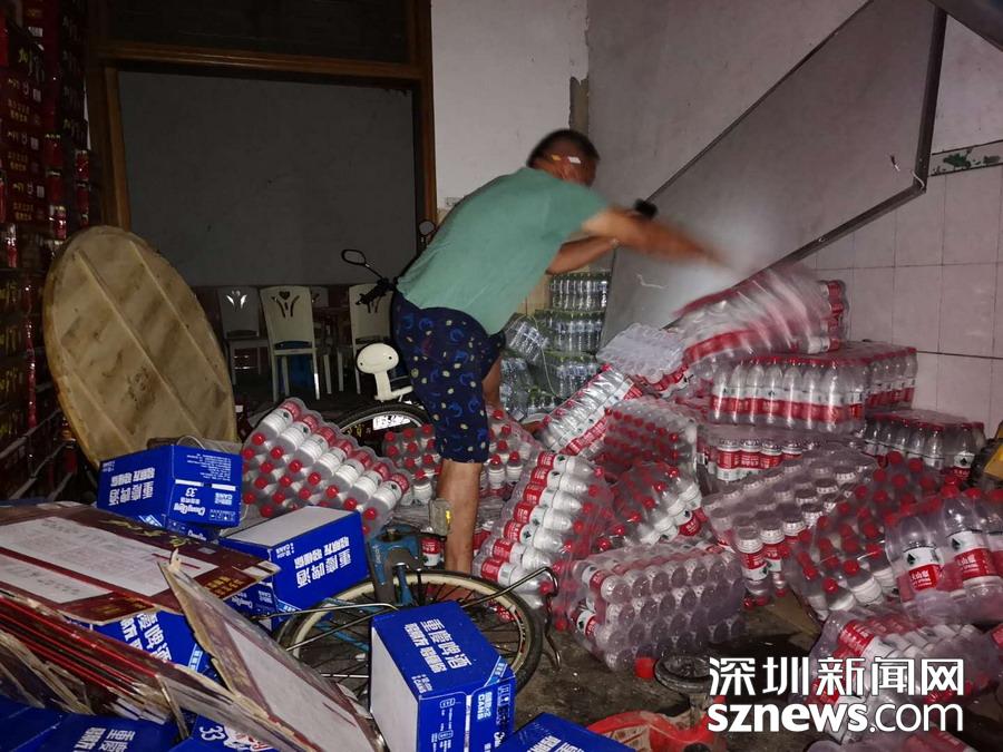 四川宜宾长宁县发生6.0级地震小卖部酒水散落一地墙面脱落。