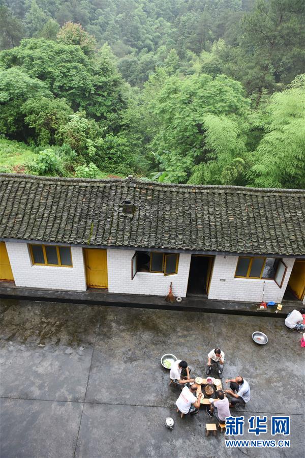 春蕾林场的护林员们在吃午餐(6月12日摄)。新华社记者杨文斌摄