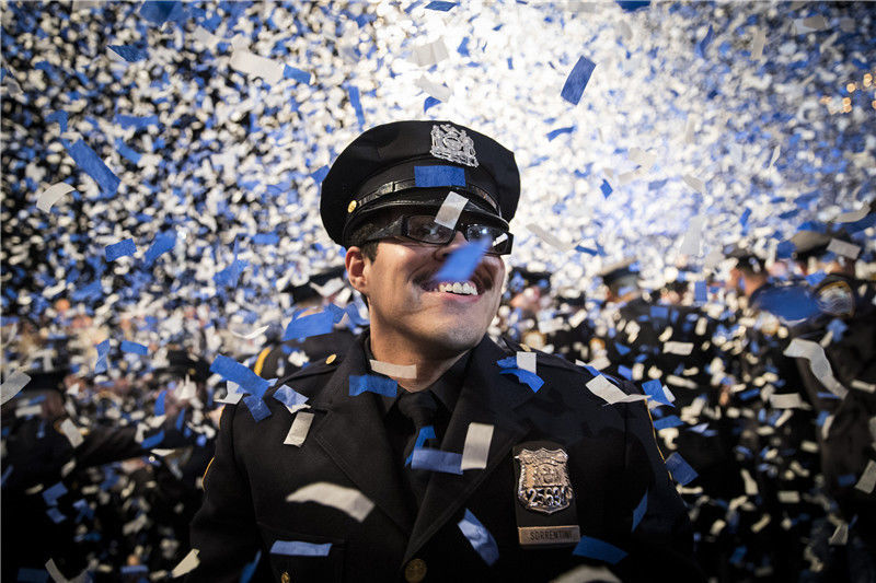 当地时间2017年3月30日,美国纽约,纽约市警局600多名新警察参加警校毕业典礼。