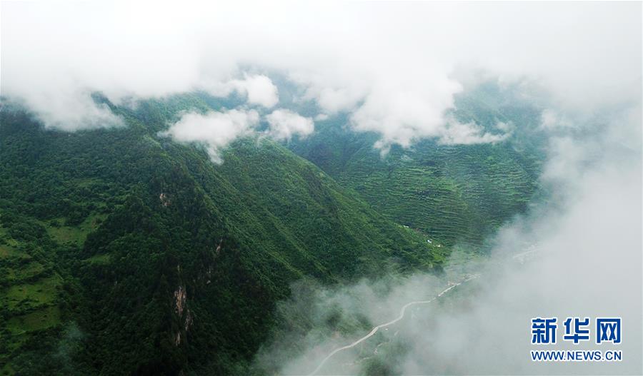 雾气缭绕的官鹅沟国家森林公园(6月19日无人机拍摄)。6月19日,位于甘肃省陇南市宕昌县的官鹅沟国家森林公园雾气弥漫,宛如仙境。官鹅沟国家森林公园集森林、草原、水体等自然景观于一体,湖泊如珠、峡谷如线、瀑布如织,生态环境优美,吸引不少游客前来观赏。新华社记者 陈斌 摄