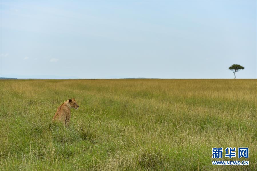 6月17日,在肯尼亚马赛马拉国家保护区,一头狮子在草丛中休息。