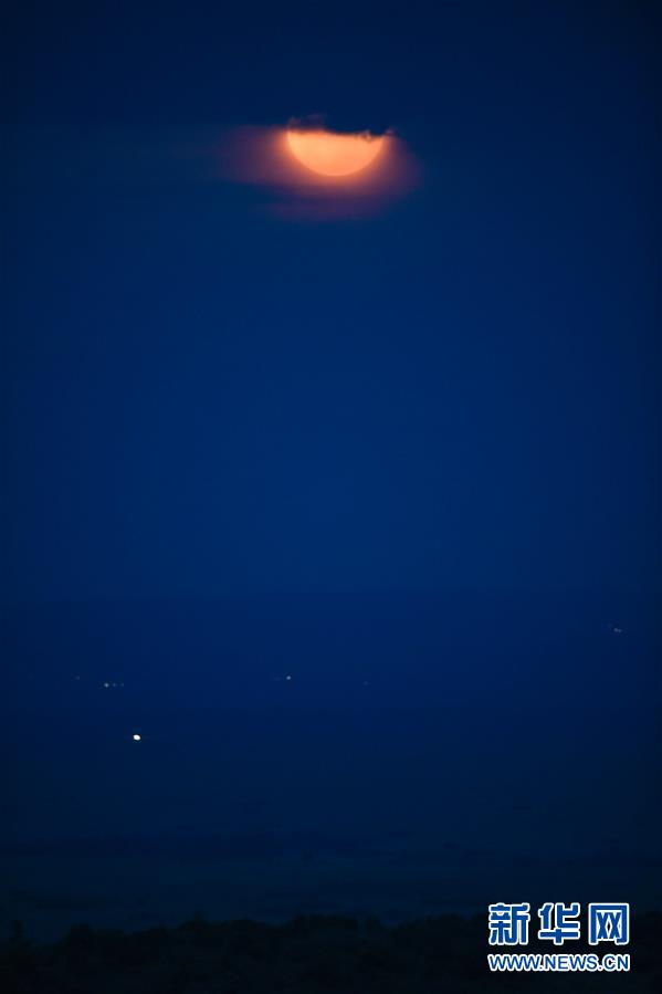 这是6月17日在肯尼亚马赛马拉国家保护区拍摄的被云层遮住的月亮。 新华社记者 李琰 摄
