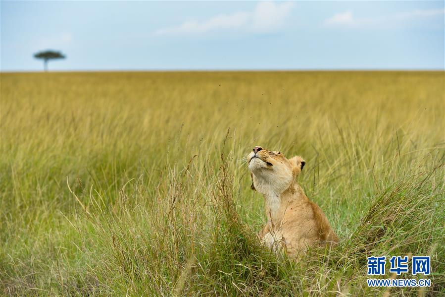 6月17日,在肯尼亚马赛马拉国家保护区,一头狮子在草丛中。 新华社记者 李琰 摄