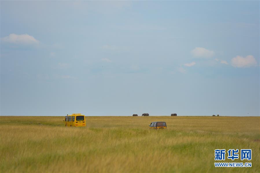 6月17日,在肯尼亚马赛马拉国家保护区,两头水牛在打斗。 新华社记者 李琰 摄