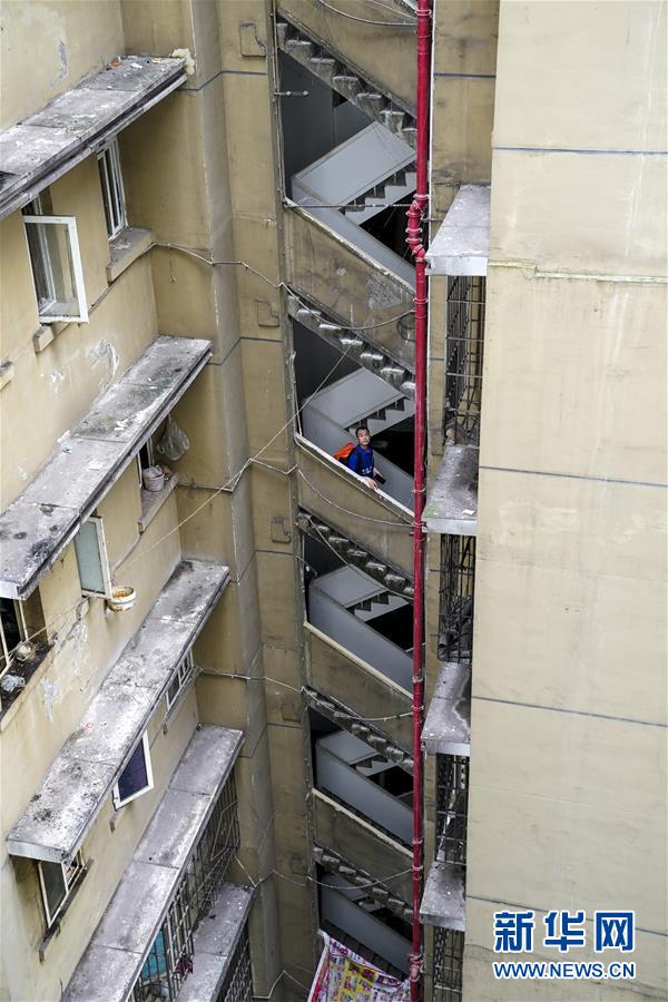 6月19日,幸银银在白象居小区旁的一栋老式楼房内爬楼去收取快递包裹。 新华社记者 刘潺 摄