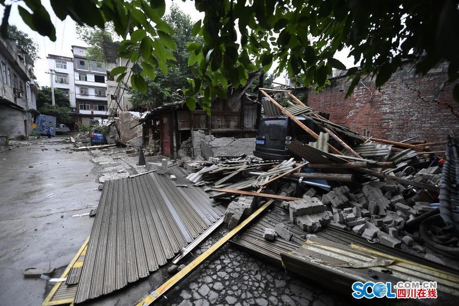 这是6月18日早上,记者从震中双河镇拍摄的受灾现场图片。(记者 杨树 摄)