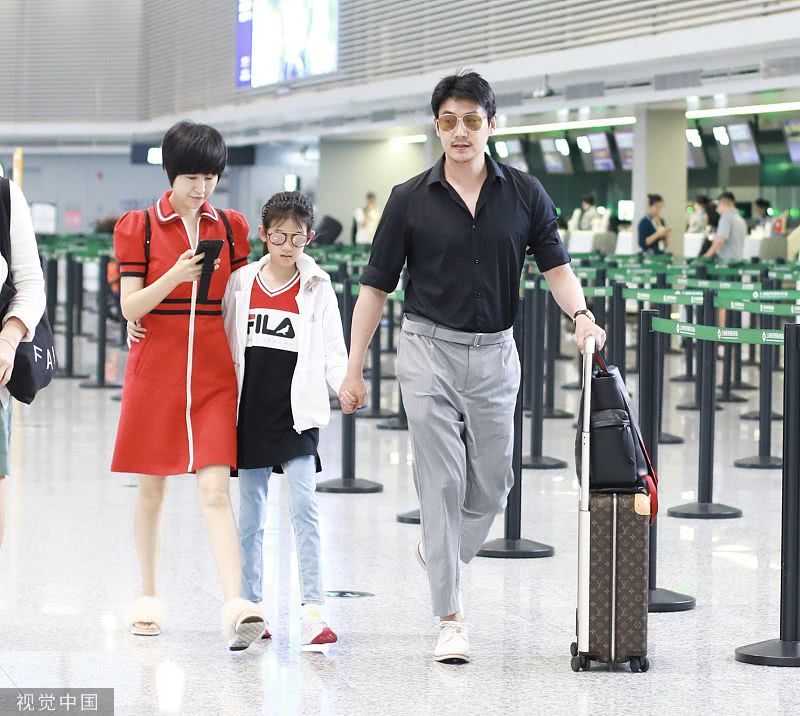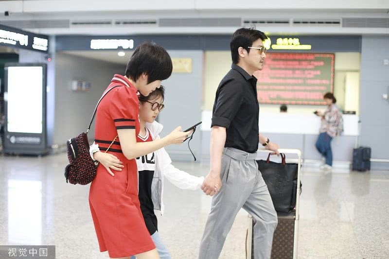 陆毅全程一个人推着行李和书包,实力爱护妻子女儿。陆毅也是娱乐圈内好父亲的典范,《爸爸去哪儿》之后,陆毅和女儿的优异表现也让他们一家再次出现在大众视野。
