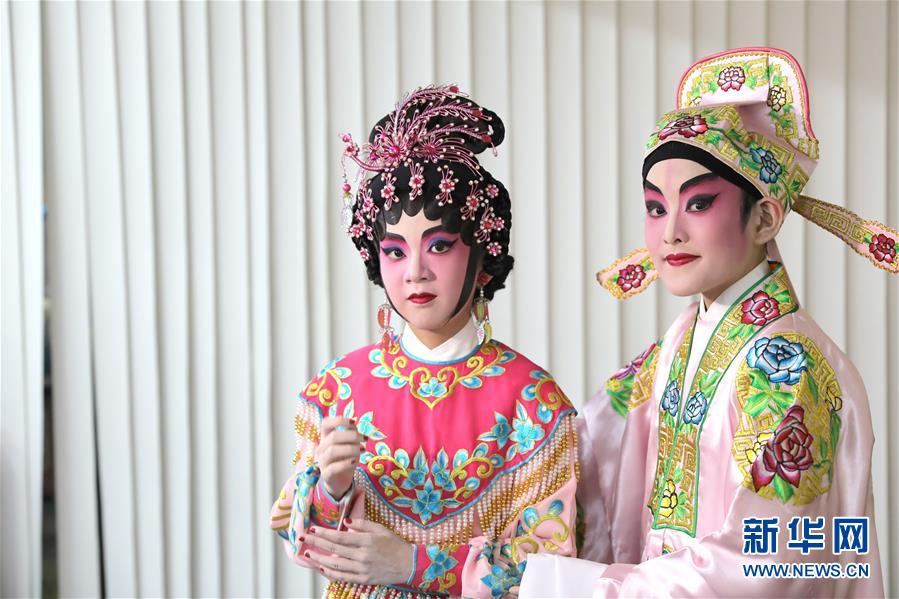 陆瑞徽(左)和利文喆在表演折子戏《艳曲醉周郎》(6月8日摄)。 声辉粤剧推广协会成立于2003年,是香港重要粤剧艺术团体之一,致力于向青少年推广粤剧。协会目前有两个初班,3个中班,一个青少年班。粤剧又称“广东大戏”,表演技艺包括“唱做念打”,即唱功、身段、台词、武打,主要流行于广东、广西和香港、澳门等地区。2009年,粤剧被列入联合国教科文组织人类非物质文化遗产代表作名录,今年正逢十周年。 新华社记者 吴晓初 摄