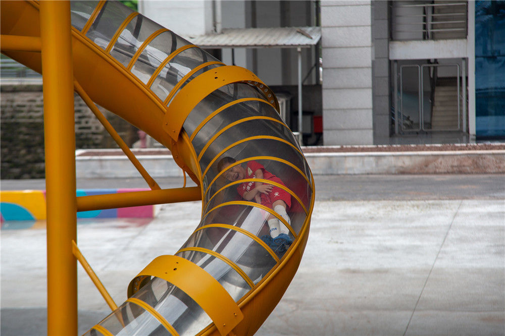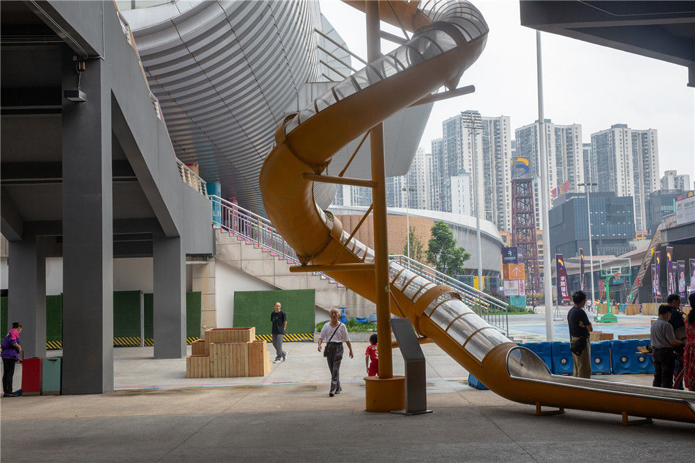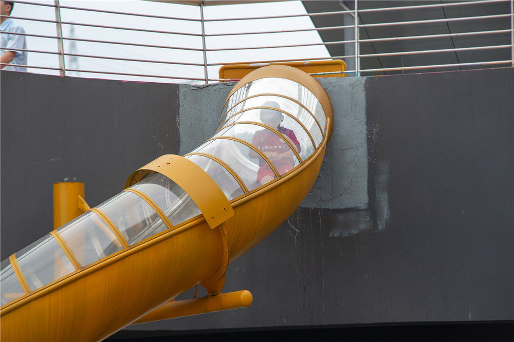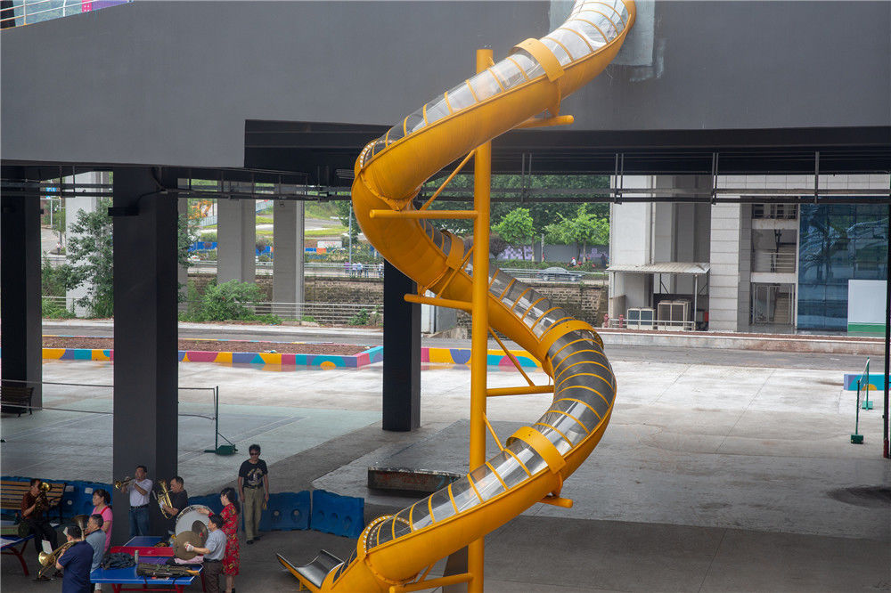 2019年6月23日,重庆一轨道站出门几米就是一个滑滑梯,入口可以直接滑到地面,免去了爬楼底的烦恼。网友感叹不愧是魔幻重庆,出行方式都这么特别。