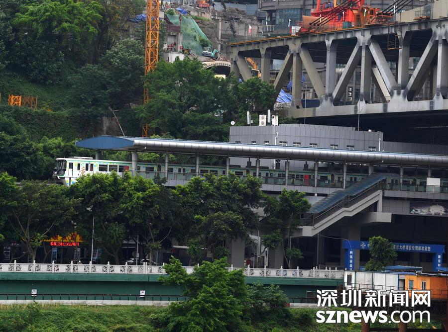 主桥钢桁梁共44个节段,用钢量约2.4万吨,高栓63万套。主桥上部结构采用双层桥面钢桁梁形式,上层为双向6车道及两侧人行道,下层为双线城市轨道交通十号线,是国内首个把轨道换乘站建在桥面上的公轨两用桥。而在曾家岩嘉陵江大桥渝中区桥头正下方,则是重庆轨道交通二号线的曾家岩站,该线路也是重庆最早投入运行的轨道交通线路。