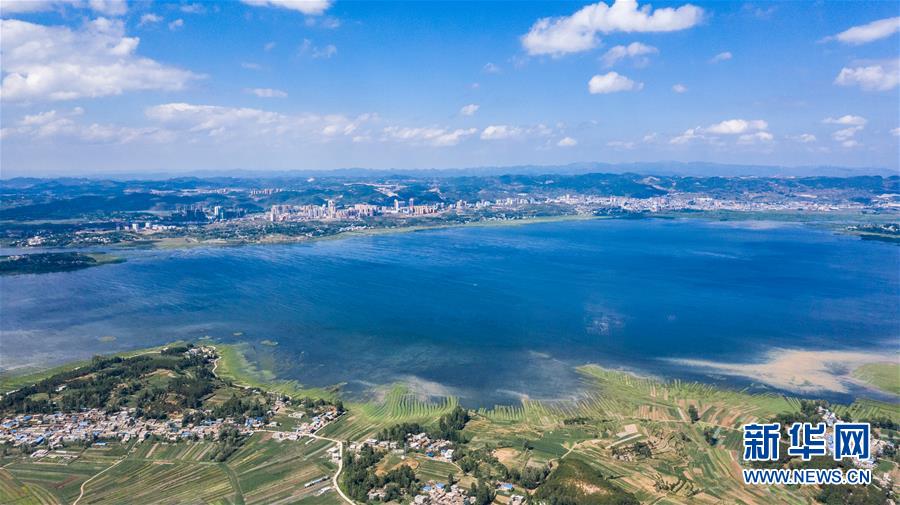 6月20日无人机拍摄的草海国家级自然保护区,绿地部分是退耕还湖成果。 新华社记者 陶亮 摄