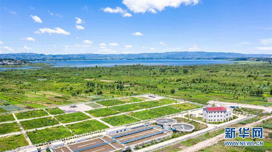 6月20日无人机拍摄的草海国家级自然保护区万吨生活污水处理厂。 新华社记者 陶亮 摄
