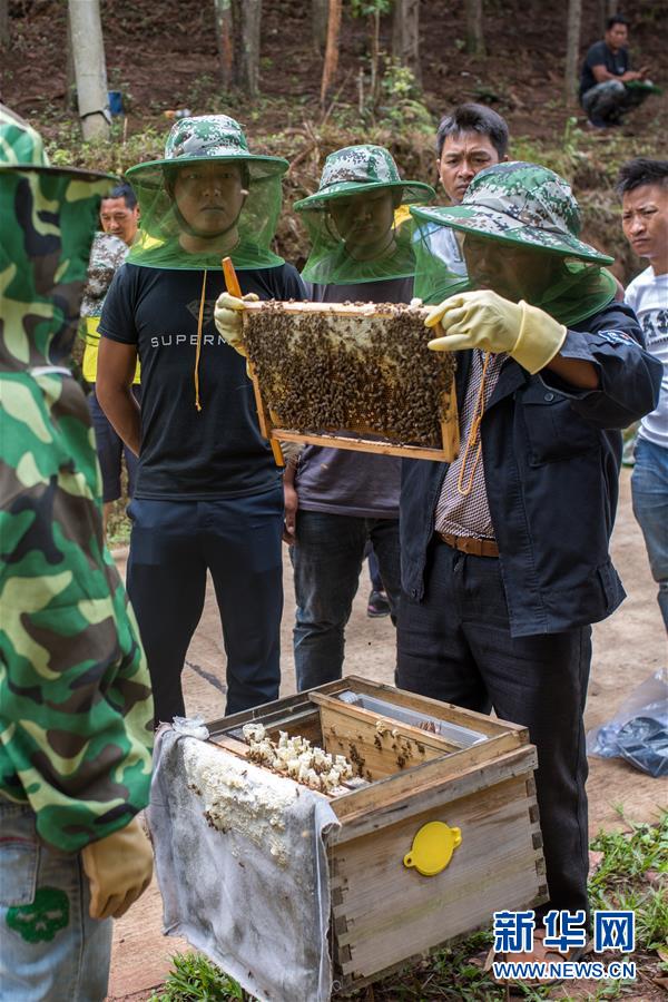 在云南省西盟县勐梭镇班母村中华蜂养殖基地,村民在学习养蜂技术(6月16日摄)。 精准扶贫的春风,吹到了西南边疆。在云南省西盟县的拉祜山寨,人们告别了吃不饱、穿不暖、没有安全住房的日子。学习先进技术,改变精神面貌,发展养蜜蜂、种甘蔗等甜蜜产业,拉祜人的日子越过越甜。 新华社记者 秦晴 摄