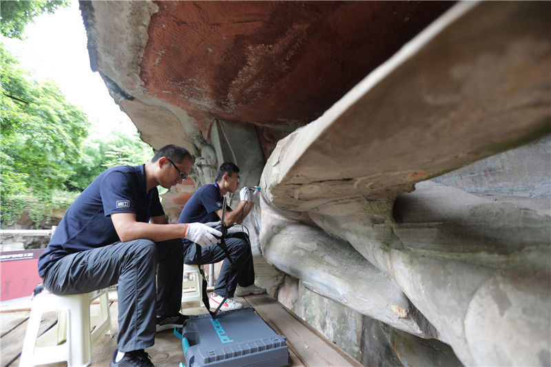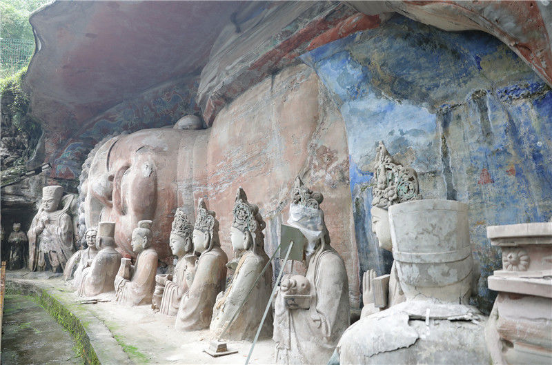2019年6月29日,重庆大足,世界文化遗产——大足石刻内的卧佛造像保护修缮工程正式启动。