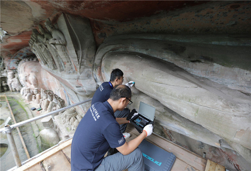 大佛此次“体检”的主要区域是胸腹部,胸腹部开裂残损区域的病害原因基本查明。