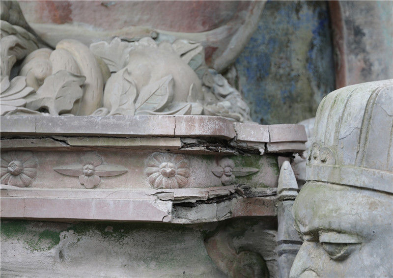 由于在千百年风吹日晒等自然营力影响下,目前已出现渗水、本体风化及变形破坏、彩绘(贴金)风化破坏三大方面八大类病害。