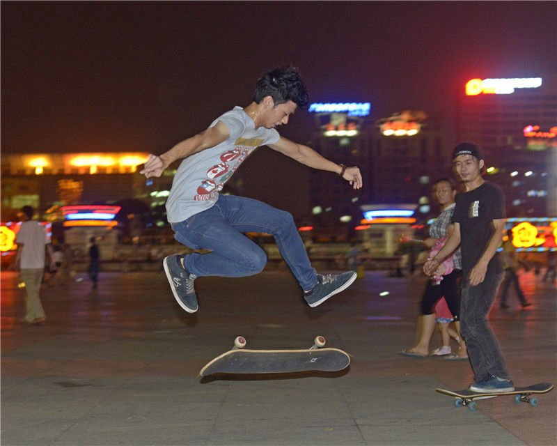 2012年06月07日,广东省东莞市,打工者下班后玩滑板。占有兵/视觉中国