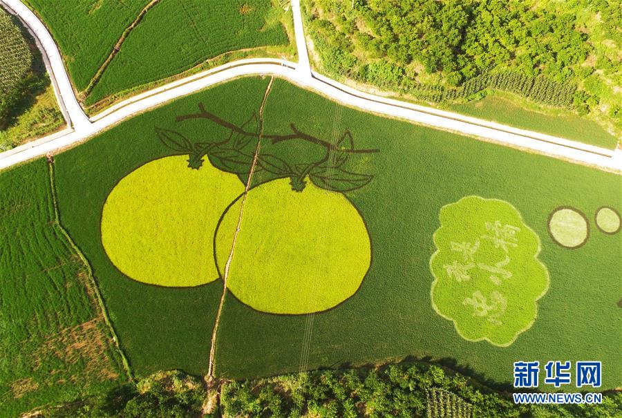 仲夏时节,在重庆忠县新立镇中岭社区出现水稻拼成的“笑脸”“橘子”等图案,成为一道靓丽的乡村田园风景线。