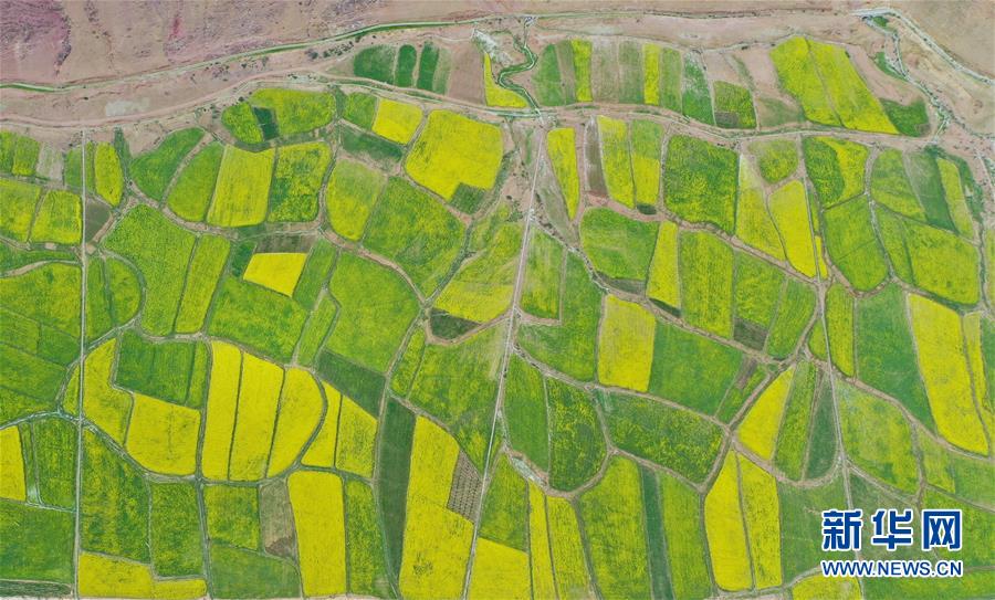 7月2日在拉萨市堆龙德庆区德庆乡拍摄的油菜花田(无人机拍摄)。 近日,西藏各地的油菜花盛开,呈现出生机勃勃的夏日美景。 新华社记者 普布扎西 摄