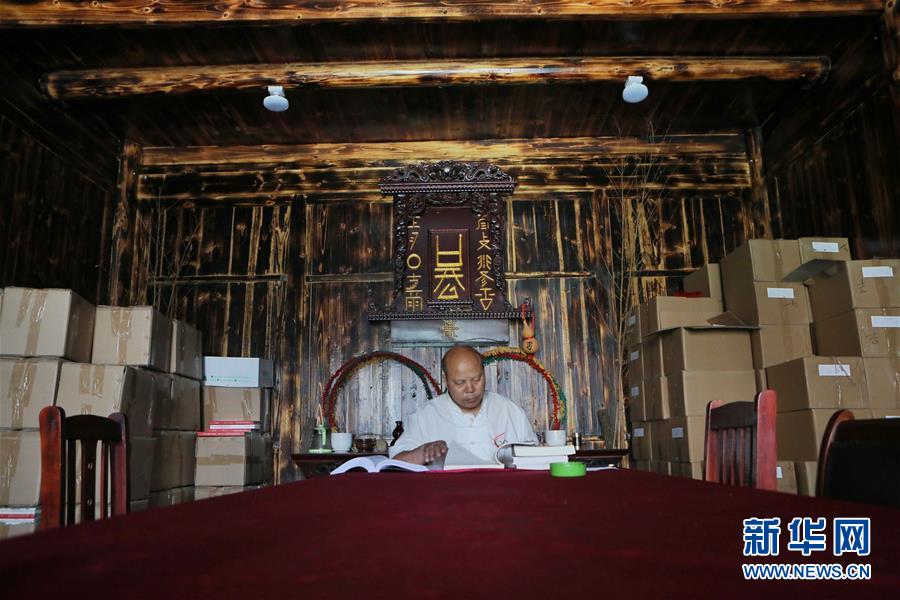 7月3日,三都县水书文化研究院的工作人员韦仕钊在查看水书文本。 新华社记者 欧东衢 摄