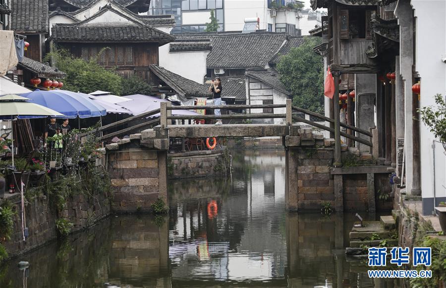 新市古镇一角(7月2日摄)。 新市古镇位于杭嘉湖平原腹地,德清、桐乡、余杭、湖州市区交界处,京杭大运河畔,是江南水乡古镇群中风貌保存较为完整、风俗民情富有特色的一个典型代表,是浙江省德清县的经济、文化重镇。新市古镇因水而生,因水而发展。在以舟楫为重要交通工具的时代,四乡物资集散于此,使得这里人丁兴旺、商贾四集,形成繁荣街市。一条与京杭大运河直接相通的市河环镇而流,其中1500余米市河河段上古老的明清河埠头、驳岸保存完好,花样繁多的拴缆石堪称江南一绝。 镇区内明清建筑鳞次栉比,街巷逶迤,家家临水,户户通舟。形成江南水乡古镇独特的“小桥、流水、人家”的“水乡泽国”的自然景观和“店宅合一”的商贸特征。新市保存风味独特的老宅有数十处,街道与街道之中有弄堂贯穿,弄内宅第优美典雅,古色古香,每条巷弄都有一个古老的故事,电影《林家铺子》《蚕花姑娘》中都留下了新市古弄和古桥的画面,一派水乡的原汁风味。 新华社记者 兰红光 摄