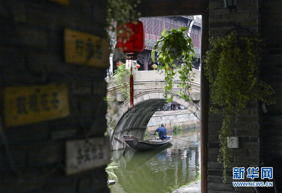 镇区内明清建筑鳞次栉比,街巷逶迤,家家临水,户户通舟。形成江南水乡古镇独特的“小桥、流水、人家”的“水乡泽国”自然景观和“店宅合一”的商贸特征(7月2日摄)。新华社记者 兰红光 摄