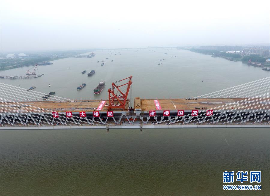 这是合龙后的商合杭铁路芜湖长江公铁大桥(4月26日无人机拍摄)。