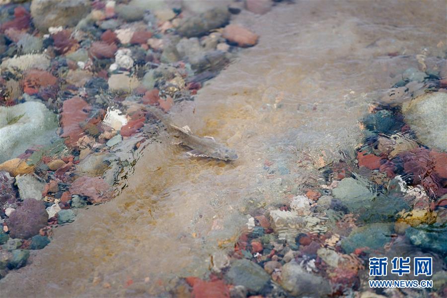 7月6日,在青海省刚察县沙柳河里,一条湟鱼在洄游。 盛夏时节,在我国最大的内陆咸水湖青海湖中,湟鱼开始成群结队沿着入湖河流逆流而上,到上游淡水河产卵,形成“半河清水半河鱼”的奇观。 新华社记者张宏祥摄