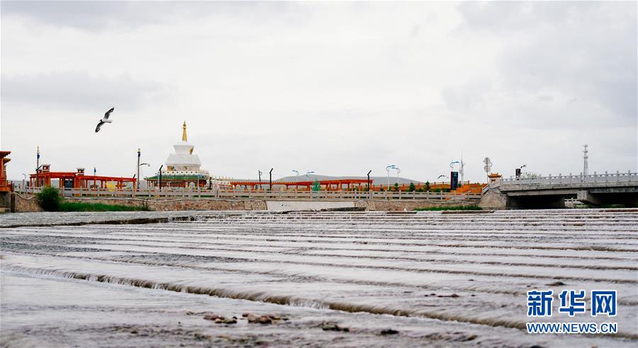 7月6日,青海省刚察县沙柳河里的湟鱼跃起向上洄游。 新华社记者 吴刚摄