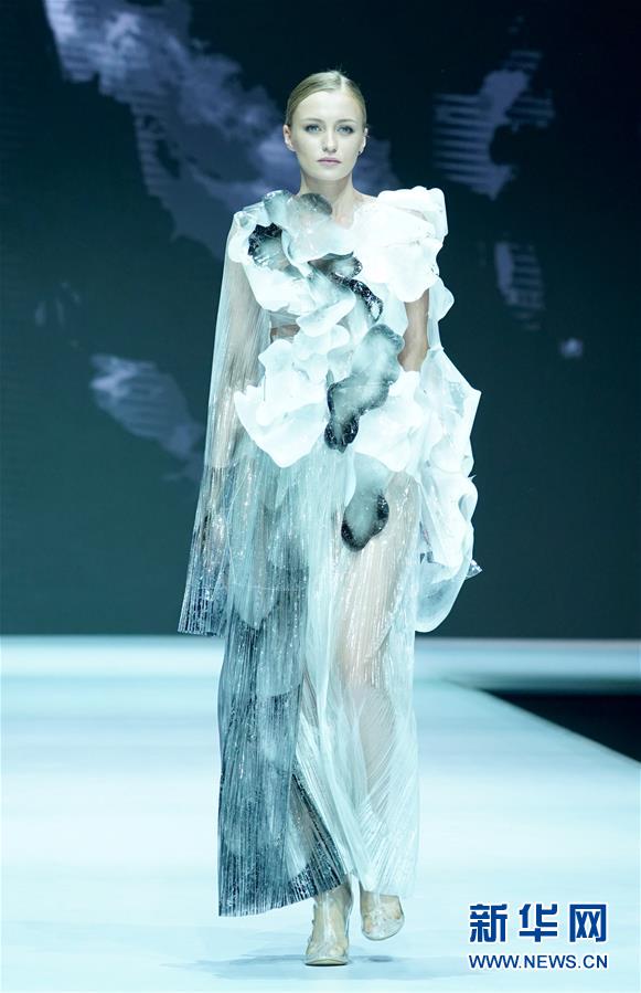 7月7日,模特在展示参赛作品。 当日,首届“中国皮都杯、辛冬装”时装设计大赛在河北省辛集市举行,吸引了国内高等院校、皮革制衣企业和独立设计师参赛。 新华社记者 陈建力 摄