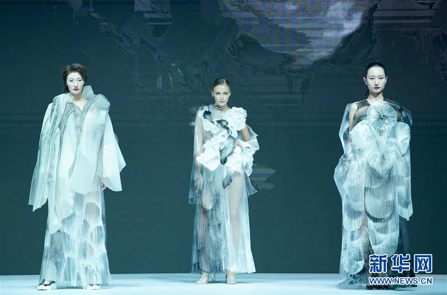 7月7日,模特在展示参赛作品。 新华社记者 陈建力 摄