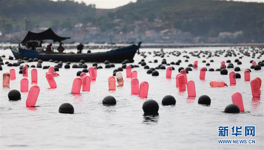 目前正是辽宁省大连市长海县扇贝和鱼类收获的季节,长海县小长山岛海域经典国家级海洋牧场呈现出一片繁忙的丰收景象。