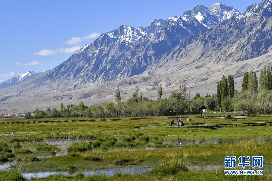 7月9日,游客在新疆塔什库尔干塔吉克自治县帕米尔高原阿拉尔国家湿地公园游玩。 盛夏时节,地处中国西陲的帕米尔高原绿草茵茵、雪山连绵,以最美的身姿迎接旅游旺季。各地游客前来新疆塔什库尔干塔吉克自治县,领略壮美的自然风光,感受浓郁的人文风情。据塔县旅游部门统计,2019年上半年,全县累计接待游客55.41万人次,同比增长43.26%。 新华社记者 李京 摄