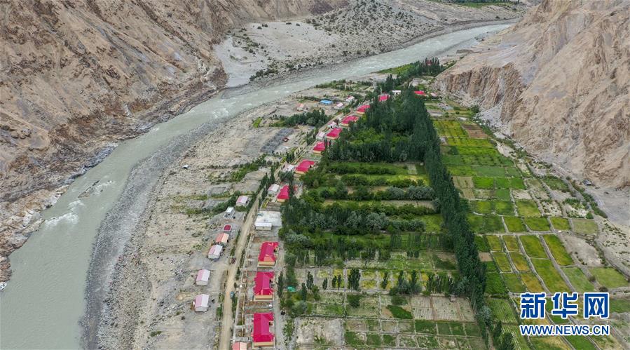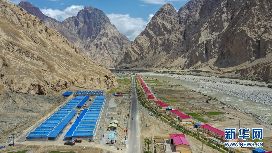 这是在新疆塔什库尔干塔吉克自治县大同乡克其克同村拍摄的一处易地扶贫搬迁安置点(6月18日无人机拍摄)。