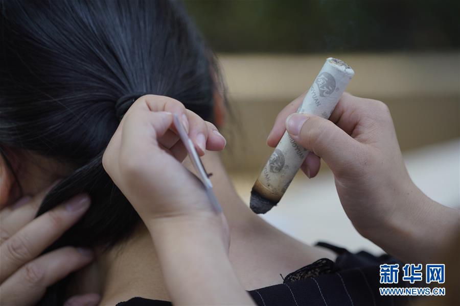 7月12日,在河北邢台经济开发区金宏社区,医务人员为市民进行艾灸治疗。 当日是初伏的第一天,也是传统中医“冬病夏治”的最佳时机。各地不少群众前往医疗卫生服务机构,贴三伏贴、针灸、艾灸,以增强身体抗病能力,达到防治疾病的目的。 新华社记者 邢广利 摄