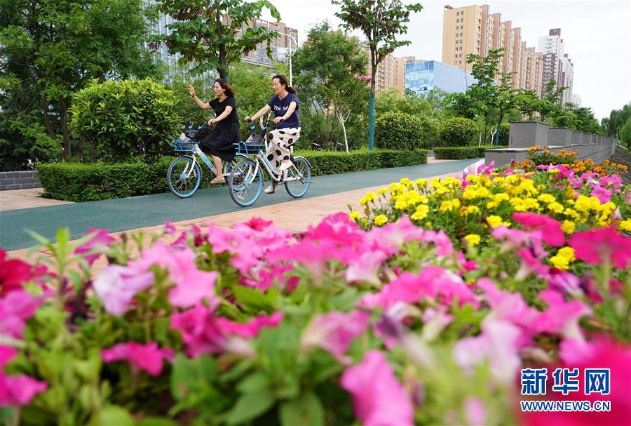 7月12日,市民在宝鸡渭河生态体育公园骑车。