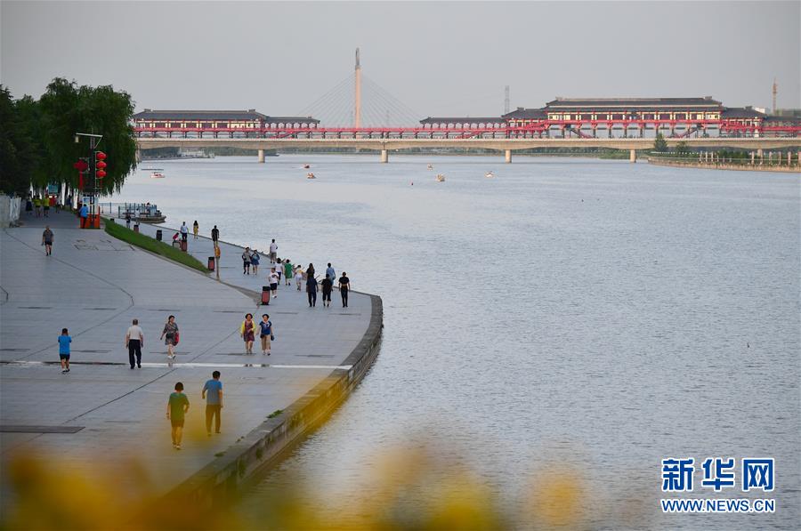 7月5日,咸阳市民在市区渭河岸边散步。新华社记者 邵瑞 摄