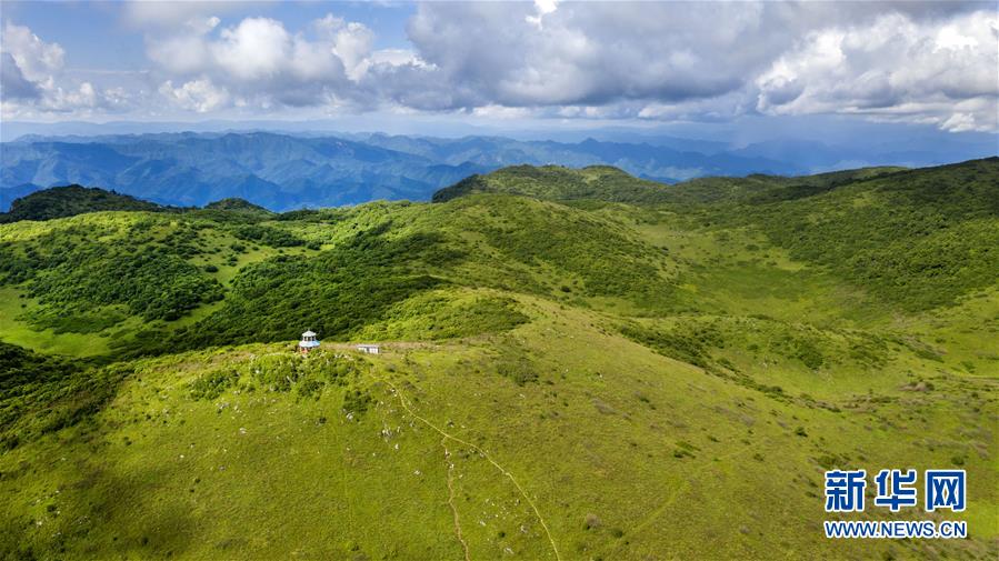 这是7月12日无人机拍摄的留坝县紫柏山风景区。 陕西紫柏山国家森林公园位于留坝县境内,因山上古树多紫柏而得名。七月的紫柏山,处处山花烂漫,一步一景,一望无边的高山草甸与变幻无穷的蓝天白云相映成趣,成为游人消夏的好去处。 新华社记者 陶明 摄
