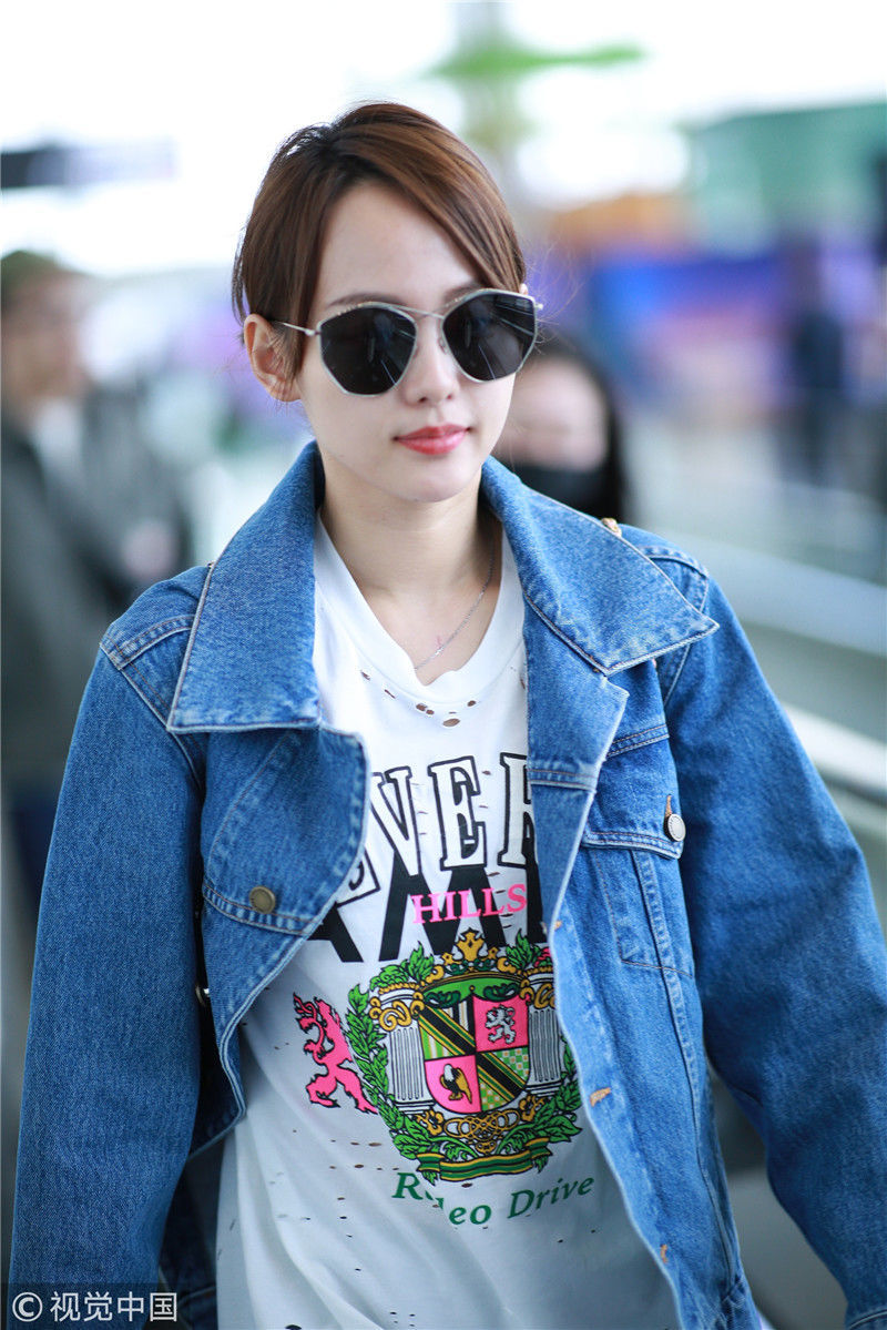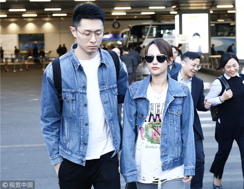 2019年4月1日,张嘉倪与老公买超现身机场,从广州飞往北京。两人同穿情侣牛仔装,一路对视热聊感情超甜,张嘉倪对镜头热情挥手举公仔,亲和力MAX。匿名/视觉中国编辑/陈进